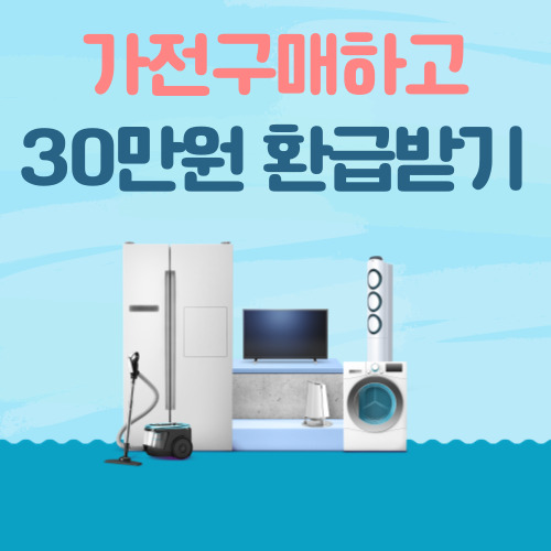 냉장고, 에어컨, 공기청정기 등 꼭 필요한 가전을 지금 구매하고 최대 30만 원 환급받으세요!